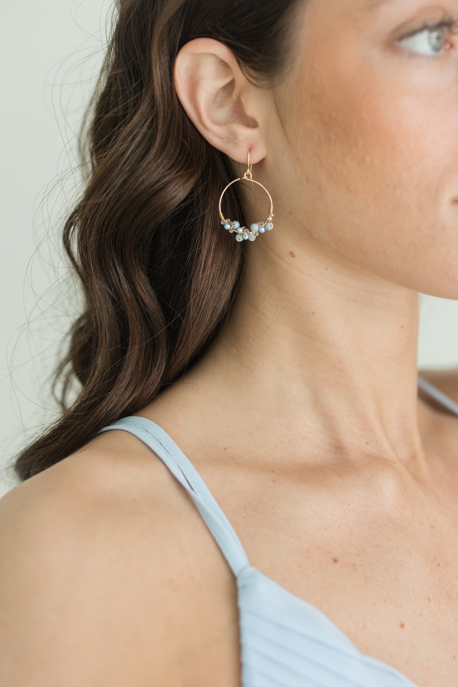 a gentle blend of soft powder blue pearls and crystal beads make the perfect elegant statement.